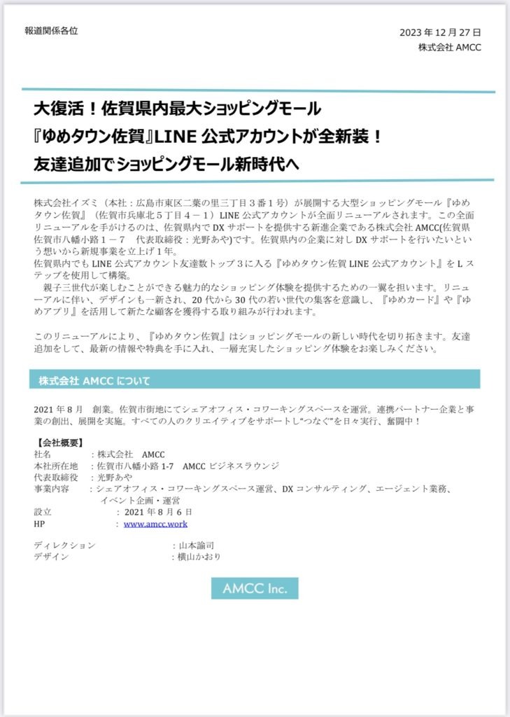 ゆめタウン佐賀 LINE公式アカウント運用開始!